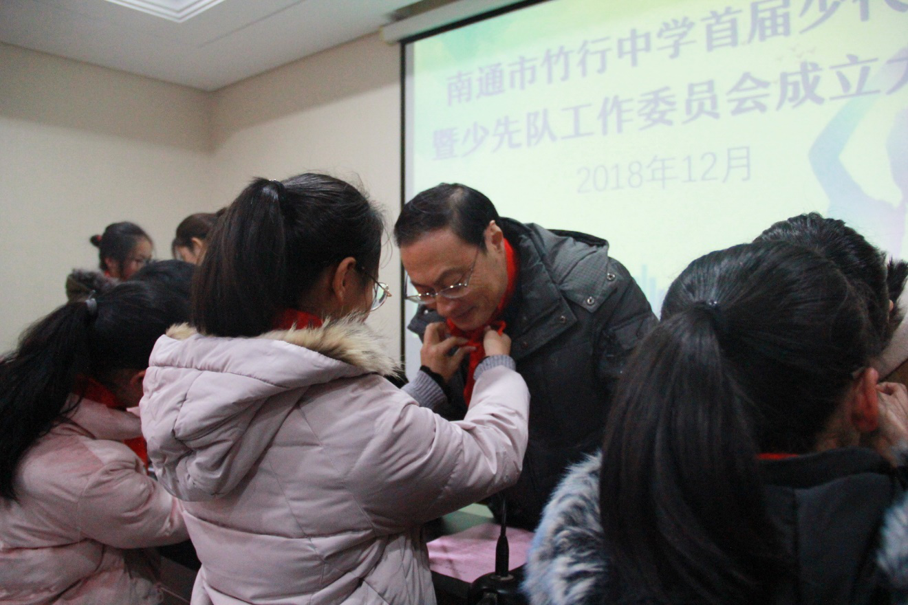 12月26日,在嘹亮的队歌声中,南通市竹行中学首届少代会暨少工委成立大会在第四会议室隆重开幕。校党支部书记陈卫东校长、政教处高忠主任、中队辅导员老师、家委会代表以及37名少先队员代表出席了此次会议。