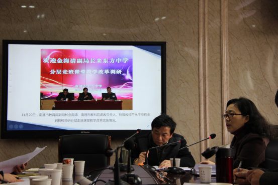 为全面督查全区学校教学工作的落实情况,加强常规管理,推动各校教学质量稳步提升,12月26日,由区教师发展中心杨苏主任带队,组织各学科研训员、各中小学分管教学的校长和教学主任对南通市东方中学教学常规工作进行调研、指导,我校教学线主任全程参加此次调研活动。