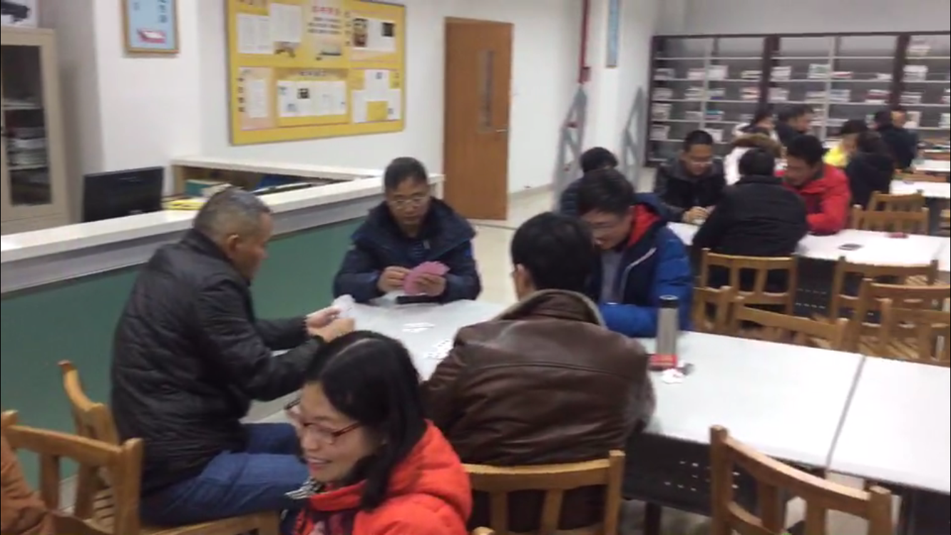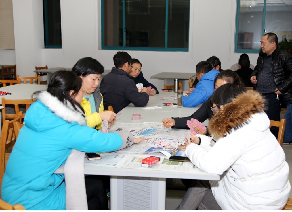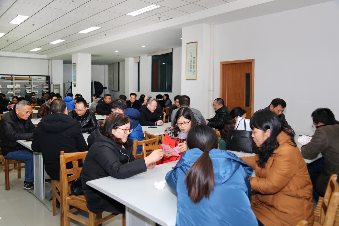 为丰富广大职工业余文化生活,按照学校工会《南通市天星湖中学第十六届“辞旧迎新”系列活动的通知》的安排,12月27日下午6:30,在学校滋兰楼105教工阅览室举办了元旦系列活动之“掼蛋”比赛。本次比赛为学校“掼蛋”爱好者提供了一次难得的交流机会,一来丰富了广大教职工的业余生活,二来也可通过比赛促进教职工之间的情感交流。此次比赛旨在丰富教职工的业余文化生活,展现职工健康生活方式,由于活动贴近广大教职工的生活情趣,吸引了教职工纷纷报名参赛,工会工作人员认真做好服务工作,协调、安排好参赛职工的比赛秩序。
