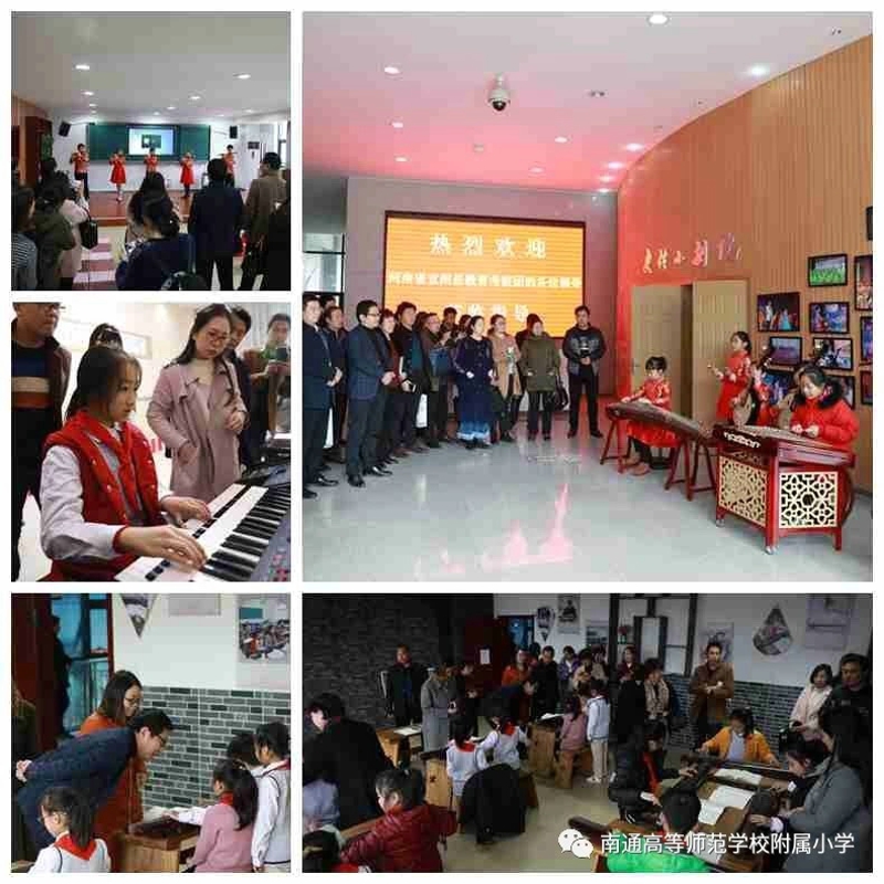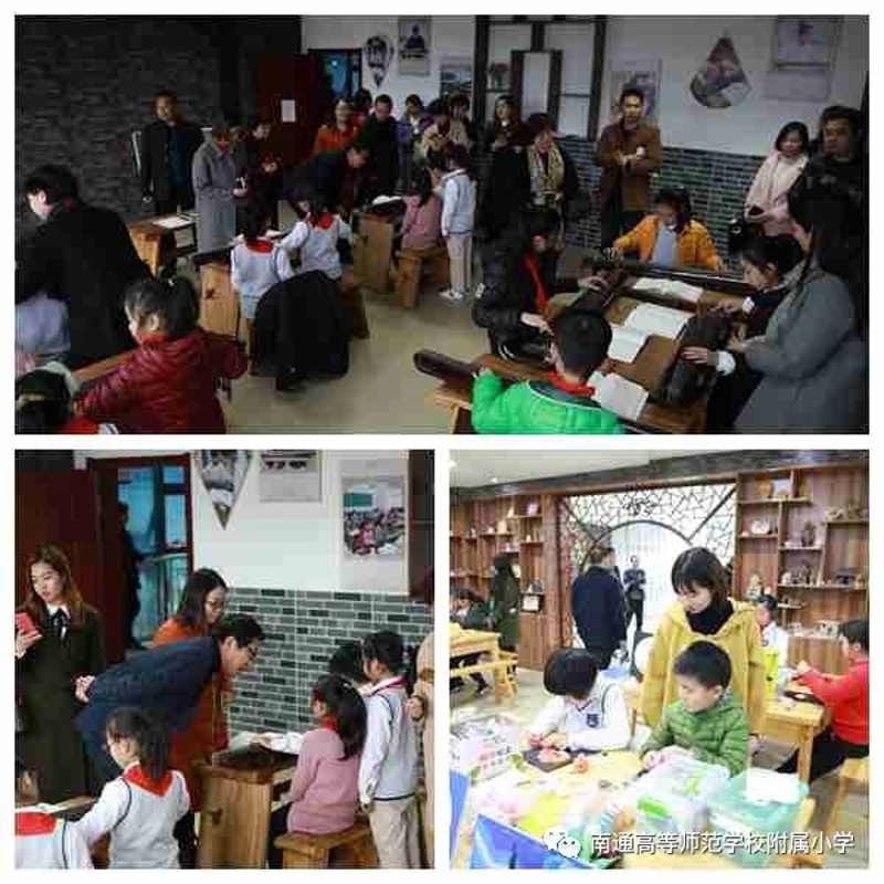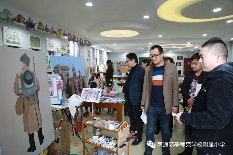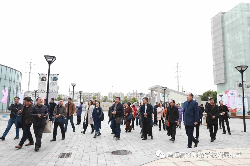 在校长室帅宁华校长,教导处邱晓春主任的陪同下,考察团的校长们参观了大生园、张謇事迹陈列馆、大生娃课间书吧、学生阅览室、教师阅览室、心理咨询室、童童电视台、女工传习所、陶艺室、古琴室等校园特色室场,观摩了我校富有“南通味儿”的选修课程展示,对学校在普及艺术特色课程的基础上选拔特长人才的做法赞不绝口。