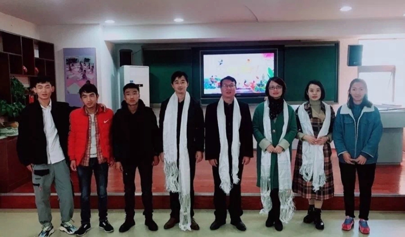 课后,热情的拉萨学生为我校老师献上了哈达以表达最诚挚的感谢。在热烈欢快的音乐声中,师范生们与我校教师跳起了富有民族特色的锅庄舞。
