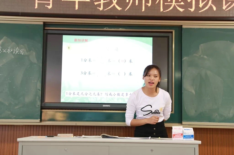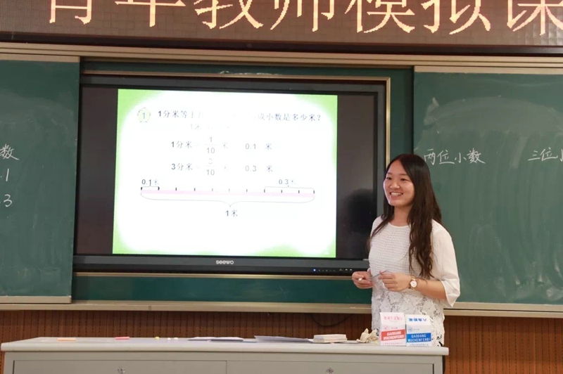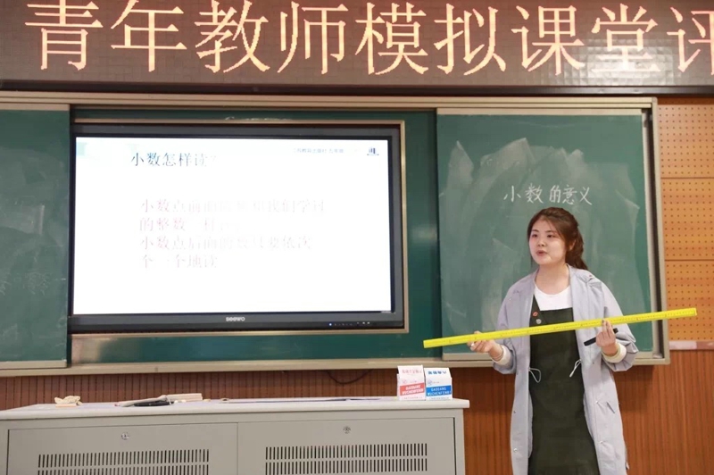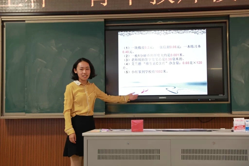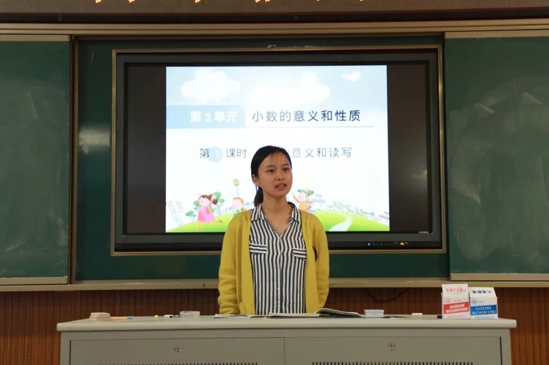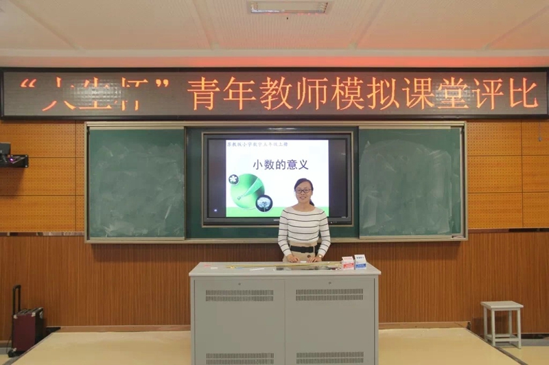 这次评比的课题是苏教版五年级上册《小数的意义》,16名选手基本功扎实,准备充分,无论是教案的设计还是多媒体课件的制作都力求精益求精。 虽然模拟上课没有学生的参与,但选手们在15分钟的模拟上课时间里能以数学课程标准为依据,以“大生课堂”的教学模式为指导,注重联系学生的知识基础和生活实际,精心设计好每一个教学环节,让学习稳步向深处漫溯。