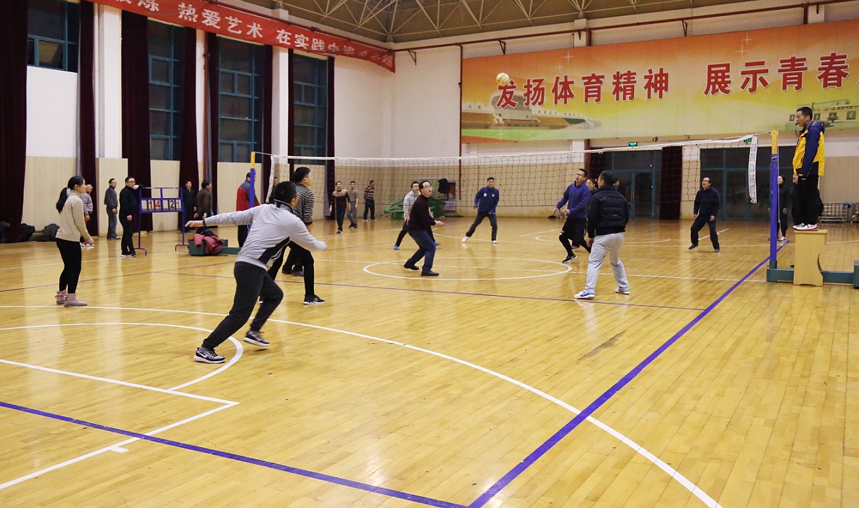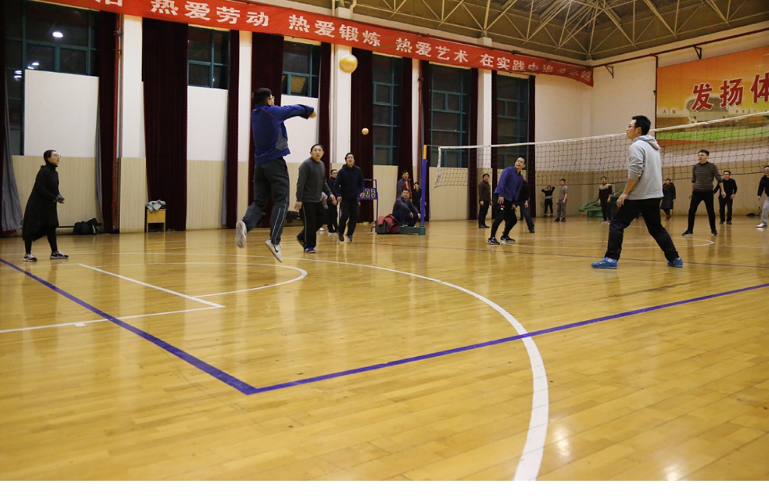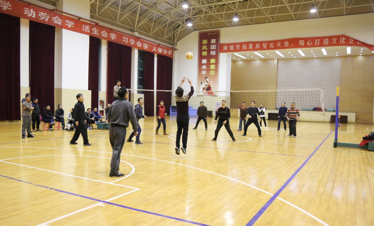 为了加强教职工之间的交流与合作,增强教职工的体育素质与丰富业余生活,培养教职工团结合作,勇于拼搏的精神,经过校工会与体育组精心组织和筹备,2019年1月3日晚上6:30,在学校风雨操场举行了天星湖中学第十六届“辞旧迎新”系列活动之排球比赛。