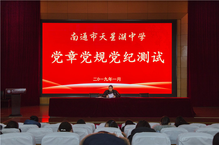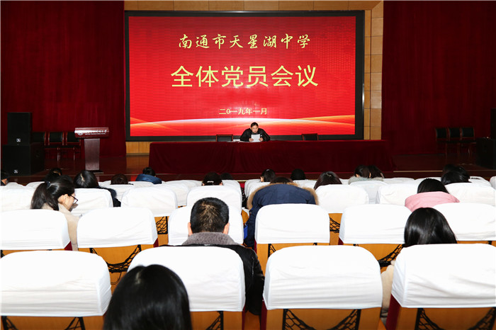 新年伊始,天星湖中学党委1月4日中午在滋兰楼报告厅召开全体党员大会,党委书记徐新民主持了本次会议。会议共有四项议程:一、通报《南通市天星湖中学“三重一大”决策制度》修改通过情况;二、反对形式主义、官僚主义专项活动;三、党风廉政建设警示教育;四《党章党规党纪》测试。