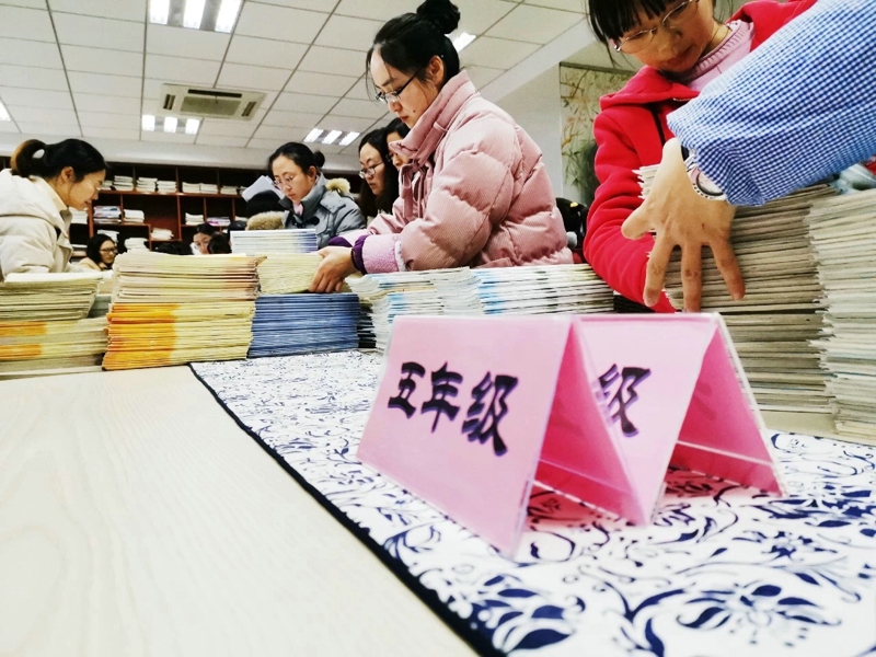 中午,调研组在教师阅览室查阅了学校教学工作台账,并对教师备课和作业批改情况进行了全面检查。