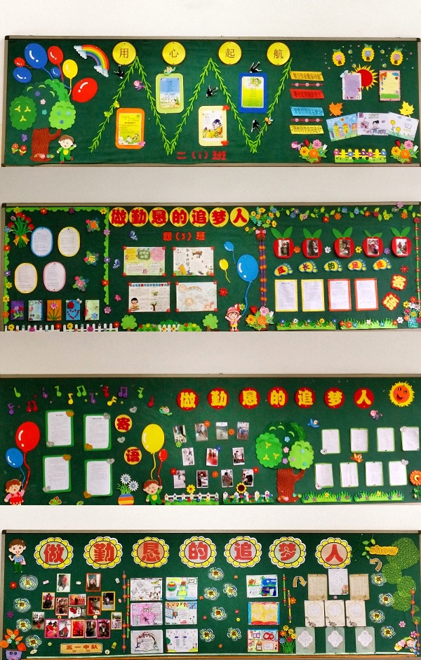 学校德育处组织各班学生总结寒假生活,以快乐为起点,以梦想为目标,践行勤恳校训,以“做勤恳的追梦人”为主题布置教室黑板报。