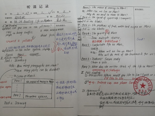 对于这次活动领导和老师们都非常重视,副校长耿元元、教务处全员和所有无课老师都参与了听课,老师们虽然来自于各个学科,但听课都非常专注,并认真记录下他们的所听所思,课后相互探讨,取长补短,形成了浓厚的研讨氛围,促进了学科间互通有无,共同提高。