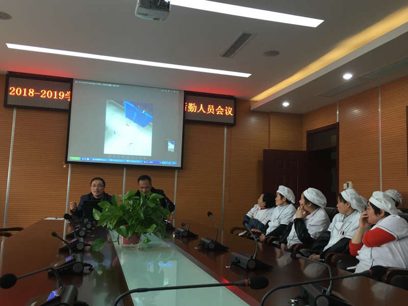 周主任首先对全体后勤人员在开学两周里所做的工作给予了充分肯定,然后对这学期的工作计划和新的考勤制度作了详细的解读。
