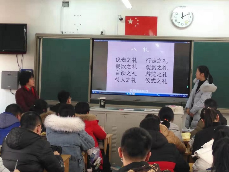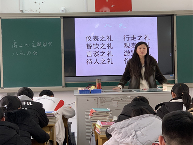 班会课首先介绍了“八礼四仪”的具体内容,然后班主任或者班干部结合生活实际,向同学们宣讲待人之礼、餐饮之礼、游览之礼、观赏之礼、仪表之礼、行走之礼、言谈之礼、仪式之礼等,引导大家无论何时何地,都要做一个文明懂礼的高中生。