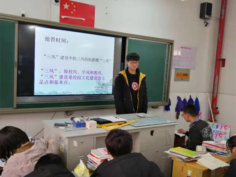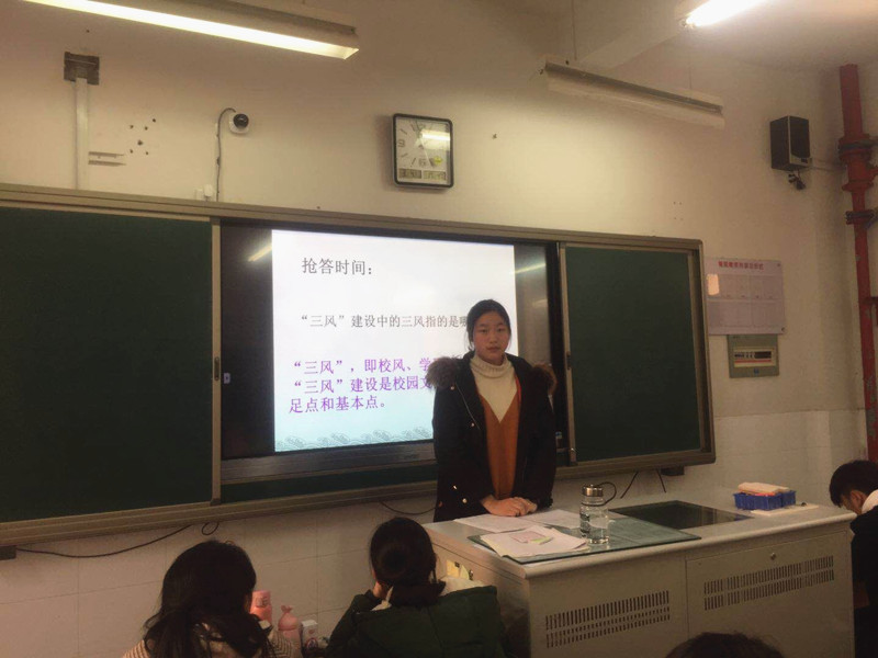 知识竞赛以班级为单位,由同学主持,从“三风”的具体内容到对“三风”的内涵解读,同学们踊跃参加、各抒己见。