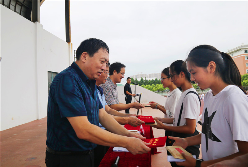 在表彰环节,陈明华副校长宣读了优秀学生干部、三好学生、学习积极分子的表彰决定,朱卫东副书记、副校长宣读了对中考成绩优秀、高分录取天星湖中学的高一学生给予奖励的决定,随后进行了相应奖项的颁奖仪式。