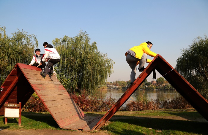 冬日的园博园宁静,清新。淡淡的野草的幽香,葱茏蓊郁的林木,曲折蜿蜒的小径,平和温柔的湖泊,远处连绵的山峦……园林之美尽在眼前。同学们徜徉在这湖光山色之中,流连忘返。