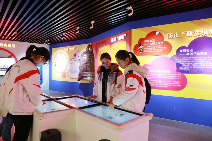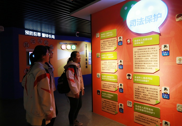 近期开放的法制教育展馆吸引了无数学生的目光,展馆选取极具典型意义的多个案例,以通俗易懂的语言,配合照片、插图、漫画等清晰直观、易于理解的内容形式,揭示各类违法行为及其危害,提高了同学们学法、知法、守法、用法、护法的意识。