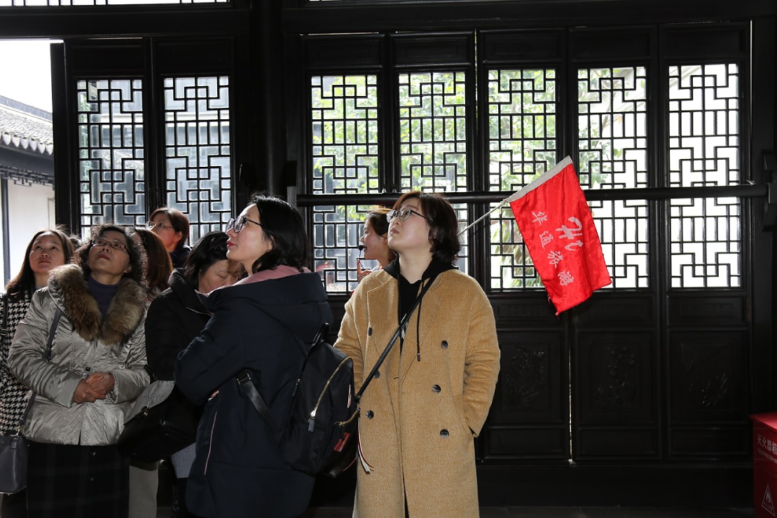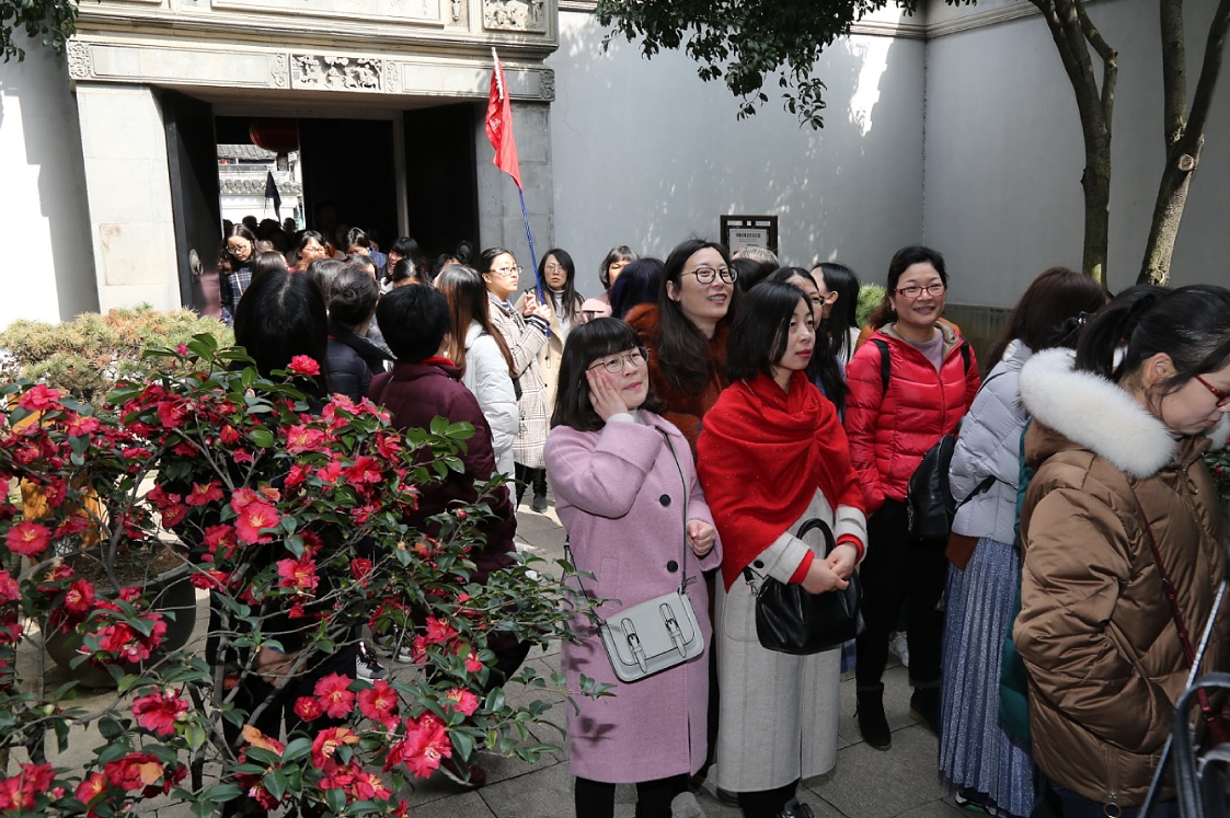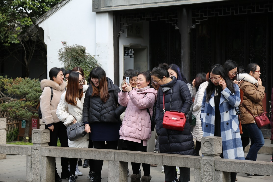 3月8日天星湖中学组织女教职工到苏州木渎古镇进行实践活动。木渎古镇,别名渎川,胥江,雅称香溪,位于江苏省东南部,苏州古城西部,地处太湖流域,是江南著名的风景名胜区,素有“吴中第一镇”、“秀绝冠江南”之誉。女教职工们上午饶有兴趣地参观了榜眼府第、古松园、严家花园、虹饮山房等典型的苏州园林景点,下午兴高采烈地前往灵岩山景区寻访古迹,攀爬踏青。大家一路欢歌,谈笑风生,或赞叹古镇历史之悠久,或惊讶园林设计之独特,或观赏陶醉自然的美景,或拍照留下美丽的身影……古镇的山水释放着她们疲惫的内心,映照着她们甜蜜的笑容,历史的遗迹引发着她们深沉的思考,陶冶着她们高雅的性情……个个心旷神怡,流连忘返。