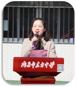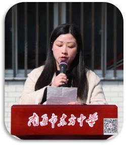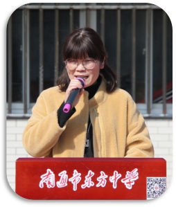 教师代表朱小平老师从目标、心态、方法、锻炼四方面向学生提出建议,并承诺做学子坚强后盾,与大家同进退,并肩奋战。