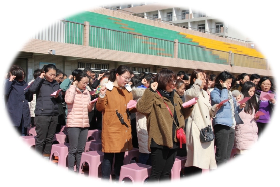 “忠于职守、精诚团结,言传身教、以身作则……”初三全体教师在王桂玲副主任的引领下集体宣誓,在接下来的中考复习冲刺中与学生同甘共苦,为学生保驾护航。