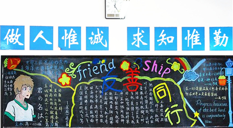 为了进一步推进社会主义核心价值观进校园,南通市天星湖中学开展了以“友善”为主题的黑板报比赛。