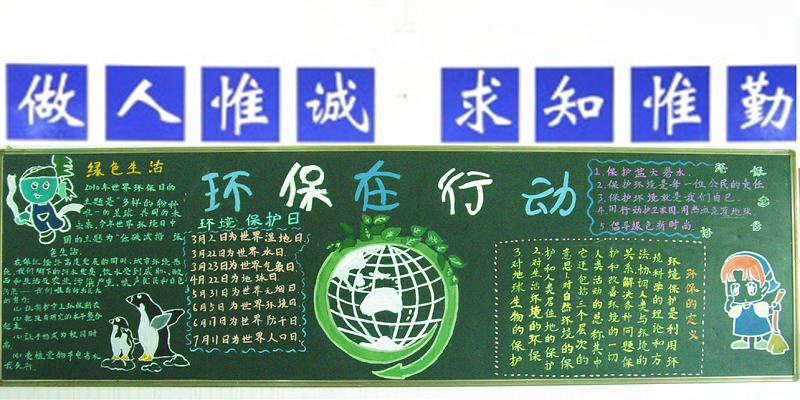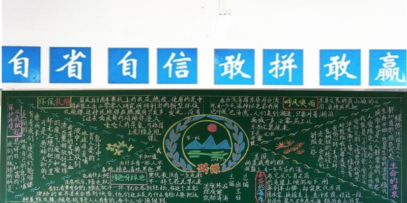 自活动开展以来,各班学生积极参与,无论是板报版面的安排,还是内容的选择、书写,都围绕“绿色环保”主题自己设计,独立完成。普普通通的黑板,在各班学生共同策划下,绘制成一幅幅别具匠心、色彩鲜艳、具有特色的图画。