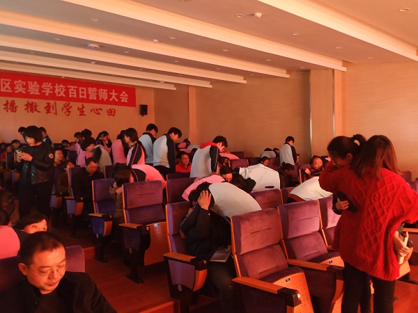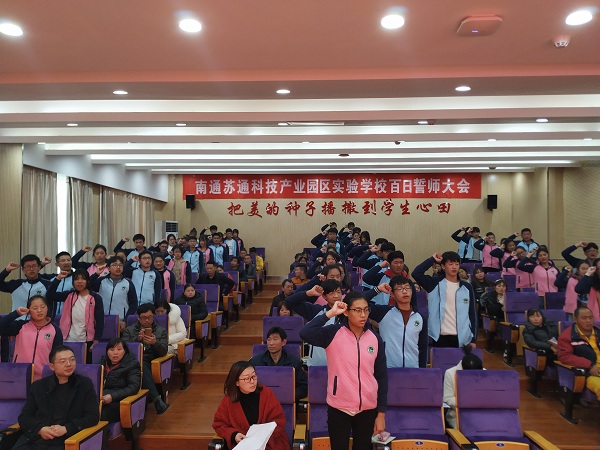 教师代表陈恺波老师激情澎湃地表达了老师们的心愿:希望同学们调整心态,坚定信心,科学归纳,整合知识,勤学苦练,提高能力。“在最后的一百天里,让我们的心和实验学校一起跳动,让实验学校2019年的天空再一次激情燃烧!”