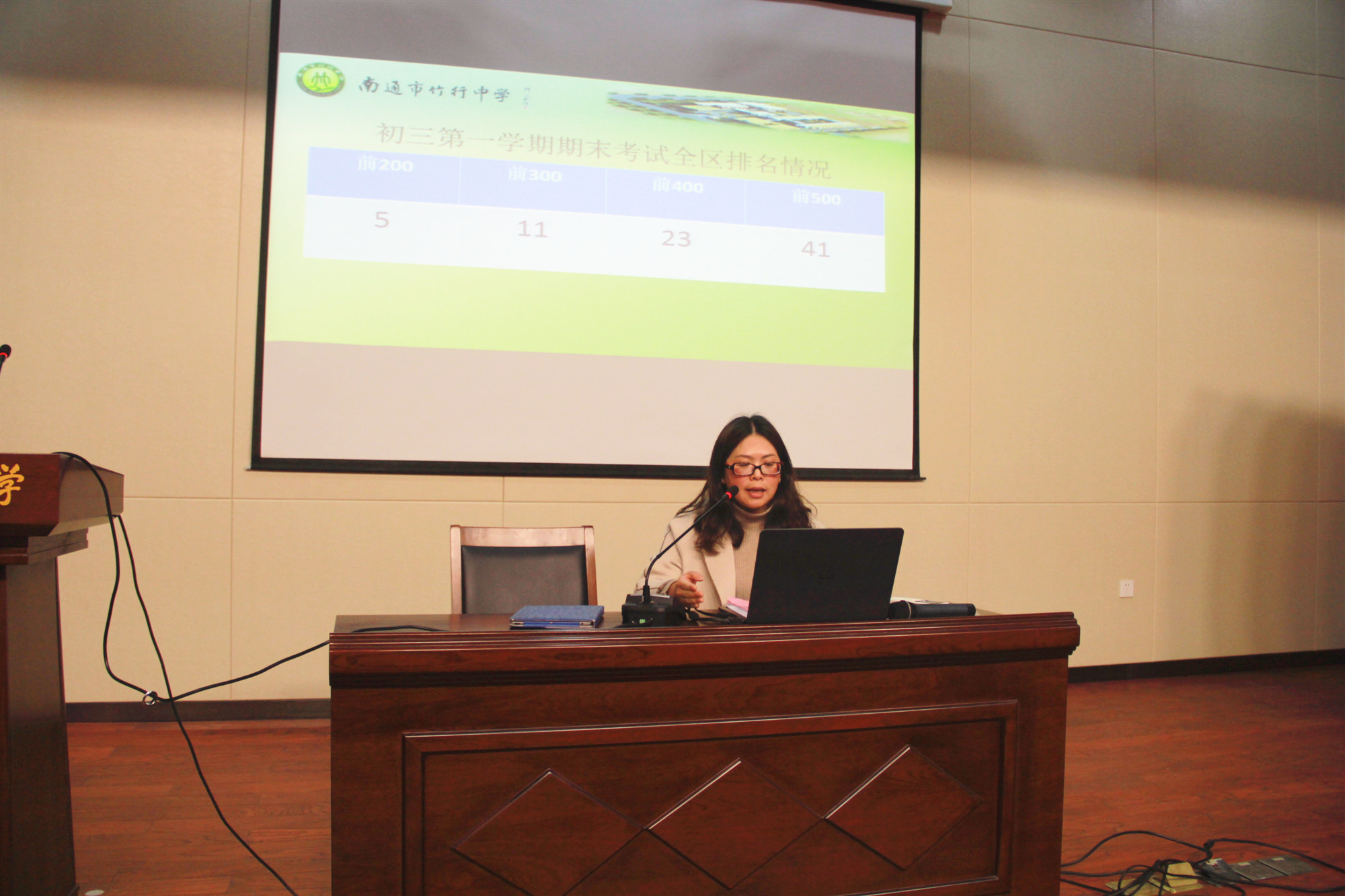 随后,教务处陆海燕主任将往届中考录取情况与上学期期末考试成绩进行比较分析,希望学生鼓舞信心,正视现实,并以此为动力,向中考发出挑战。
