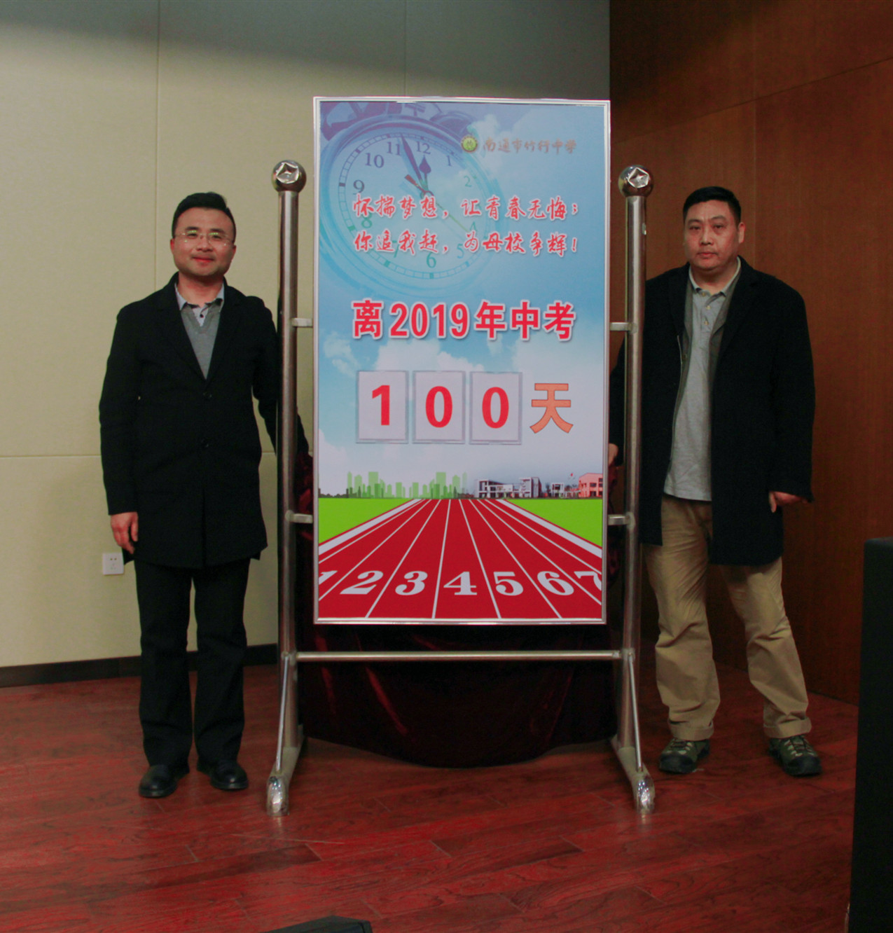 随后,由沈明明副校长、家长代表曹亚楠先生共同为“中考倒计时牌”揭牌。