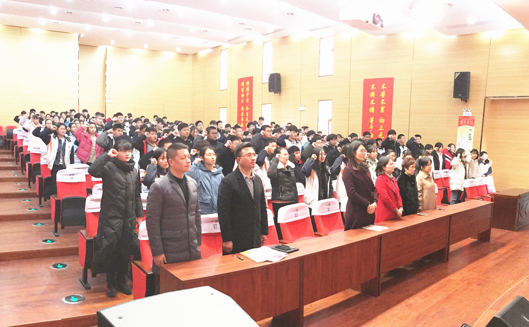 全体初三学生在学生代表曾新杰的带领下共同宣誓。同学们掷地有声的誓言,抒发了属于自己壮志豪情,坚定了中考必胜的信念,把誓师大会推向高潮。
