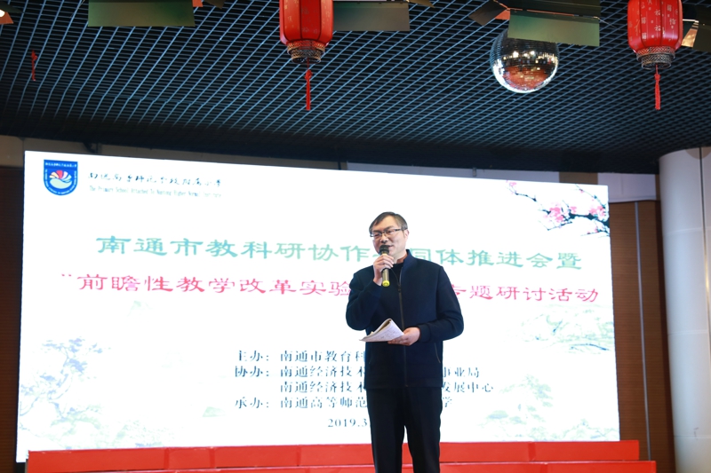 3月19日,南通市教科研协作共同体推进会暨“前瞻性教学改革实验项目”专题研讨活动在南通高等师范学校附属小学隆重举行。来自南通市教育科学研究院的专家领导、江苏省前瞻性项目建设学校、南通市教科研协作共同体学校的校长、园长、教师代表近200人参加了此次盛会。