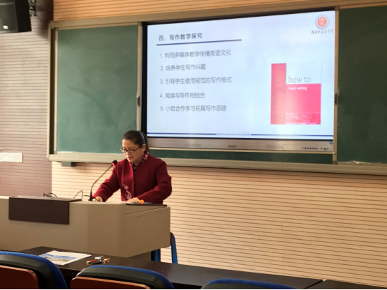 初三备课组副组长张燕老师提出核心素养下写作教学策略,她认为教师可通过向学生进行英语国家文化的介绍,拓展学生的写作思维,进而促进学生写作能力的提高。