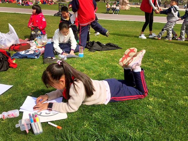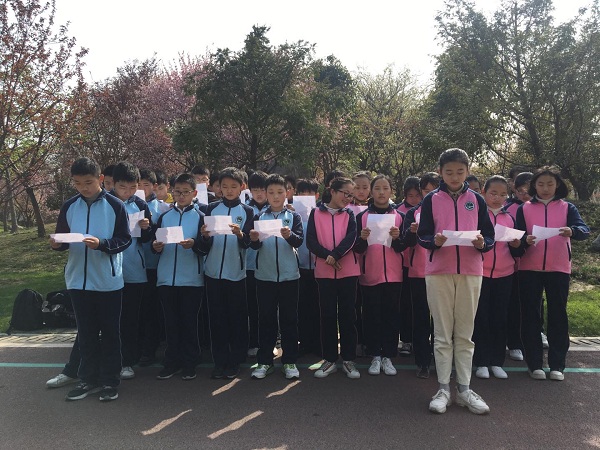 中学部的学生,通过朗诵诗词,诗词配图的形式寻找和发现春天的美丽,尤其是九年级的学生,在他们初中生涯的最后一次春游中,更是特别的珍惜这样的机会,希望能用照片留住时间,留住春天。