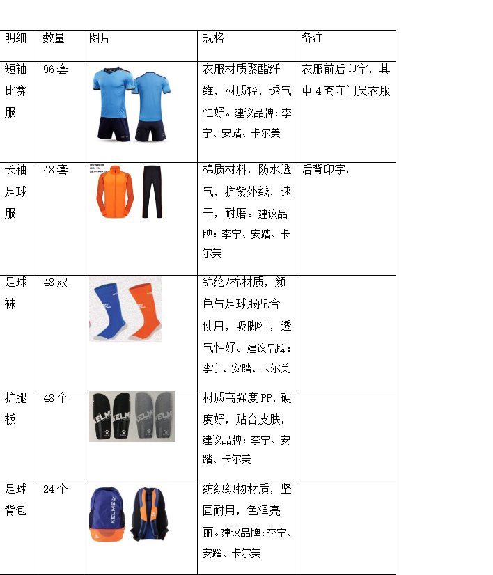 二、项目名称:南通开发区实验小学足球队服装采购项目