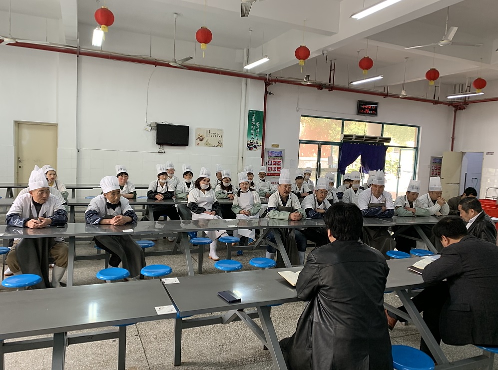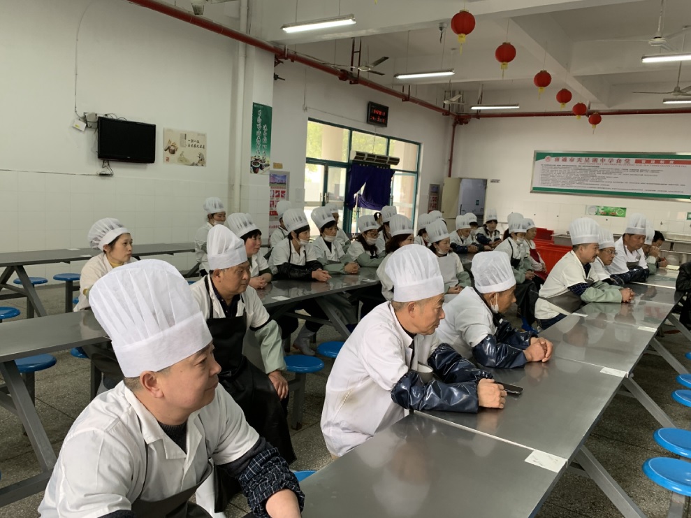 会上,邵校长首先通报了近期全国各地的安全事故及食品安全事故,尤其是重庆七中食堂食品安全事故及响水化工厂爆炸事故造成的恶劣影响。邵校长肯定了我校食堂在全体员工的努力下前期取得的成绩。为进一步强化我校食堂食品安全,他提出从“两个意识和一个落实”着手,即监督意识和主体意识,落实领导和老师的陪餐制度。要求食堂全体人员要时刻拉紧食品安全这根弦,尤其是食堂管理人员,做好每日巡查,每月全面排查并做好详实记录;在食材的进货上,严把质量关,不合格的食材坚决要拒在食堂门外。在操作规范上,邵校长从食堂工作人员的服装、个人卫生、操作流程、食物存放、加工时间、餐具消毒、食品留样、销售等方面进一步明确了相关要求。同时邵校长还指示食堂管理人员要进一步加强对食堂员工的业务培训,提高全体员工的业务能力,使我校的食堂服务水平再上一个台阶。