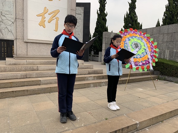 本次活动由校德育处,少先队和团委精心组织,活动在庄严、肃穆的气氛中进行。祭扫活动在庄严的国歌声中开始,学生代表在烈士纪念碑下学习烈士事迹,并向烈士们敬献白花,缅怀革命烈士,最后在汪主任的带领下,队员和团员代表们重温了入队和入团誓词。