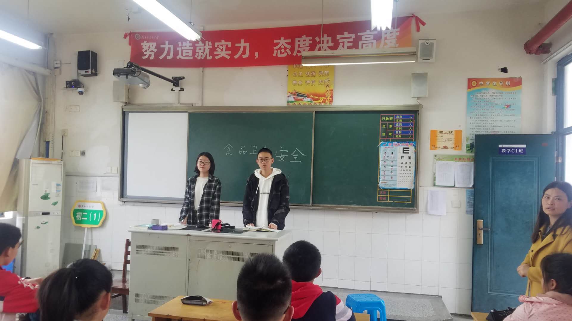 接着由一名学生做了主题演讲,演讲中提到了近几年全国范围内重大的食品安全事故,告诉大家食品安全问题一直就在我们身边,并且从多个方面倡议大家,要从主观上重视起来,从行动上警戒起来,不仅自己要重视,还要提醒家人和同学重视。