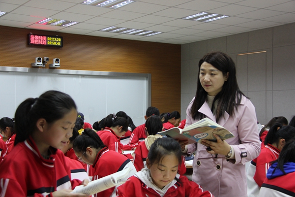 来访专家领导首先聆听了七年级语文分层走班教学课。郭小平副校长、顾石娟老师为来访专家展示了两堂不同层次的示范课,两位老师针对不同层次的学生,在教学方法上做了不同处理。C+层的课堂注重学生的主动探究、问题发现、总结归纳,提升学生的思维品质;B层课堂师时刻注意调动学生学习的主动性,给学生启发思考,发言和展示的机会。这让基础薄弱的学生也能感受到成功的喜悦。层次分明、效果明显的两堂课,获得了来访专家们的一致好评。