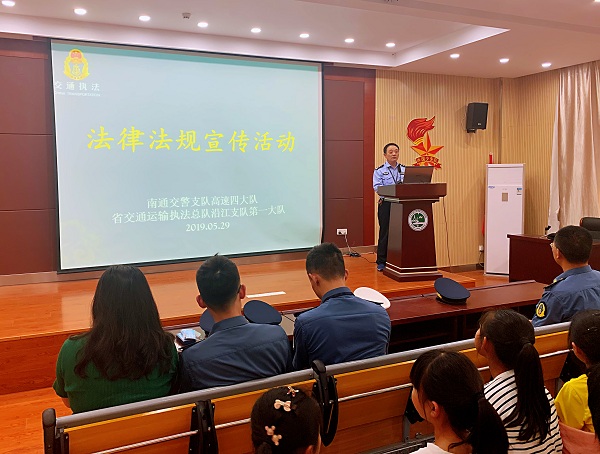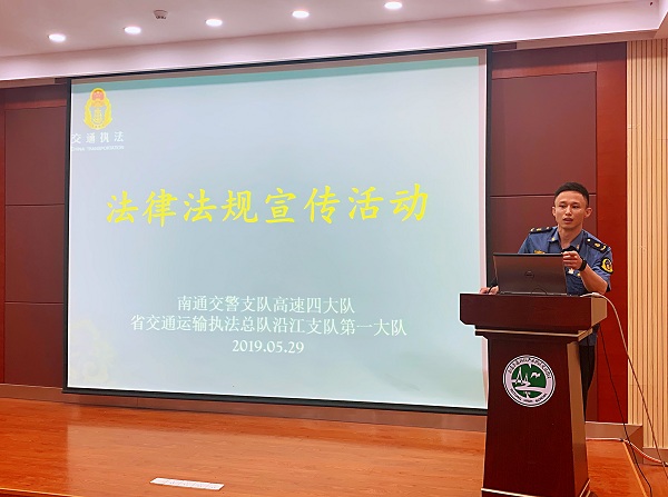 5月29日,省交通运输执法总队沿江支队第一大队和南通交警支队高速四大队的警察叔叔们,来到苏通园区实验学校,为我校学生开展法制安全教育讲座。