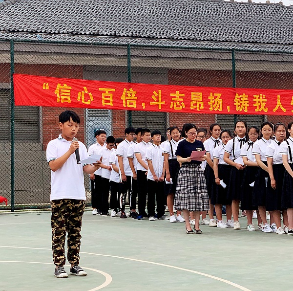 初三全体同学在汪鑫同学的带领下,紧握右拳,庄严宣誓:“请老师放心,我们一定不负重托!请学校放心,我们一定为母校争光!”铮铮誓言响彻校园,相信初三学子们定会拼尽全力向最美的青春致敬。