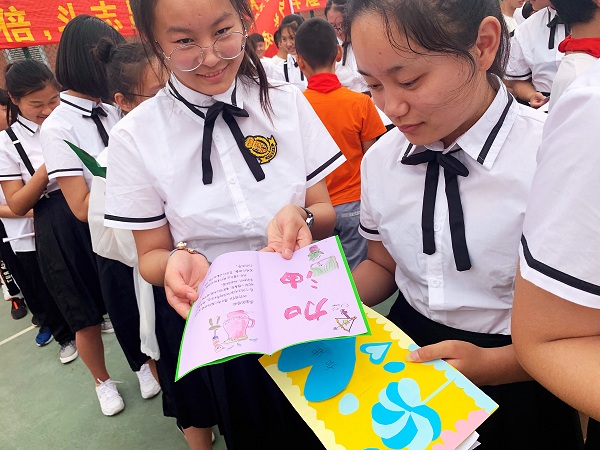 小学部的同学们送上了他们亲手绘制的祝福卡片,表达了他们对初三哥哥姐姐们的真诚祝愿。