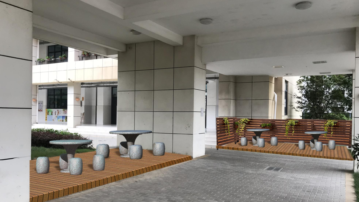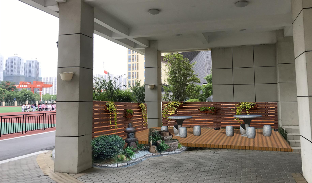 本工程位于南通市经济技术开发区能达小学校园内,施工内容为在原有水景周边及连廊两侧增加部分乔灌木、球类的种植,景石、花岗岩石磨、聚宝盆、圆桌等安装 ,防腐木地板的铺装、不锈钢橱窗制作等(详见效果图及施工图)