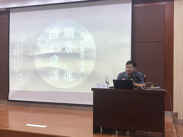 虽然窗外天气阴凉,邢老师的讲课却是激情满满,令人如沐春风。邢老师从愿景、进路与建议三个方面,谈到了教师的专业发展。