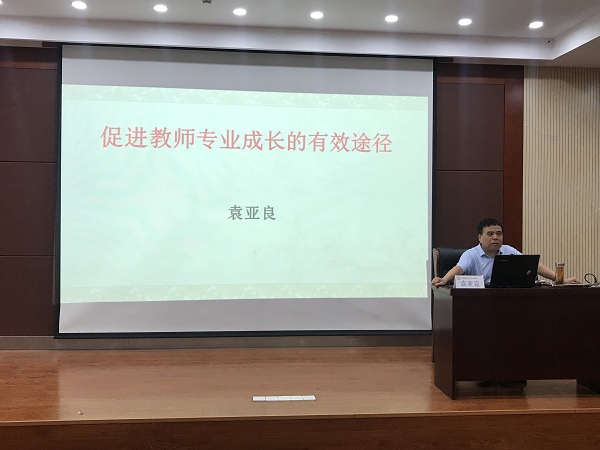 中午稍事休息之后,苏通园区实验学校的老师们期待满满地迎来了南通市教育科学研究院的初中数学教研员袁亚良主任,他为大家主讲的培训课程是《促进教师专业成长的有效途径》。