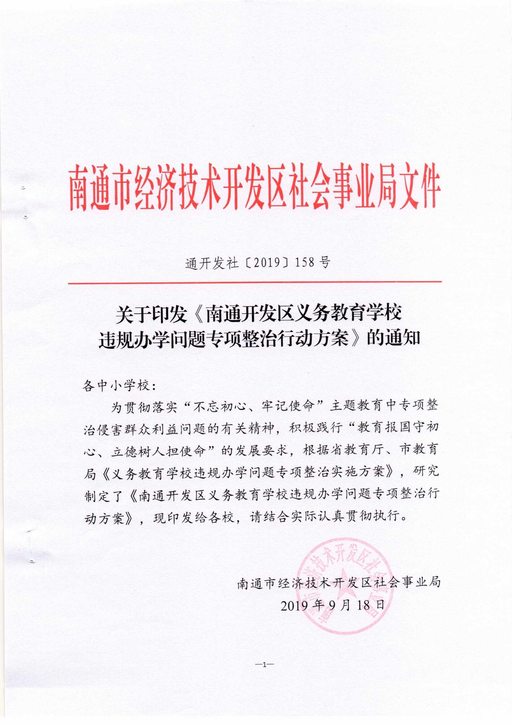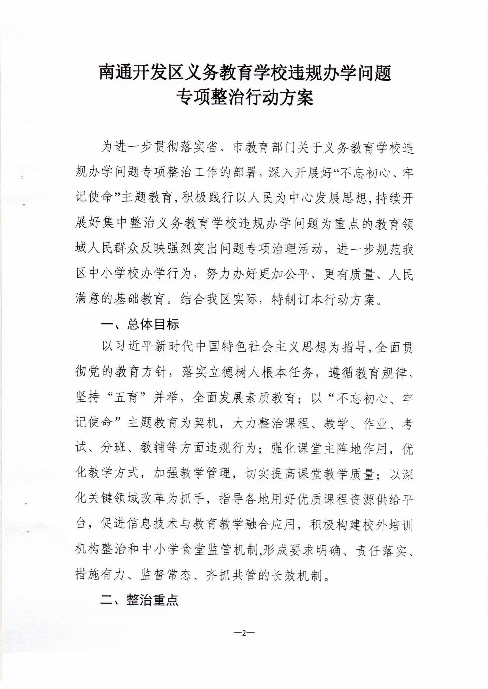 南通开发区义务教育学校违规办学问题专项整治行动方案