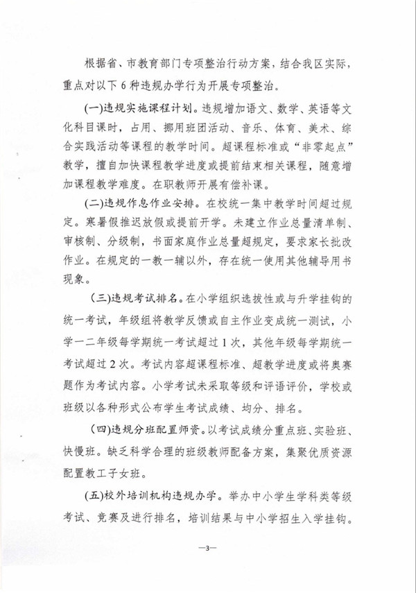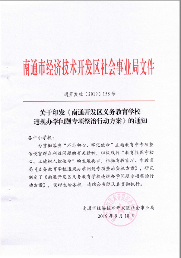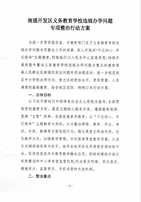 南通开发区义务教育学校违规办学问题专项整治行动方案