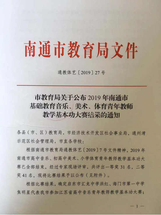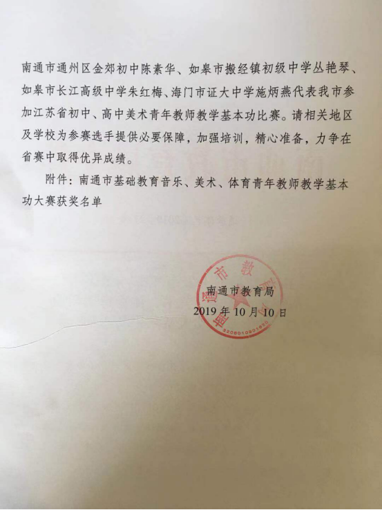 喜报:东方中学腾龙老师在南通市初中美术青年教师教学基本功大赛中荣获一等奖