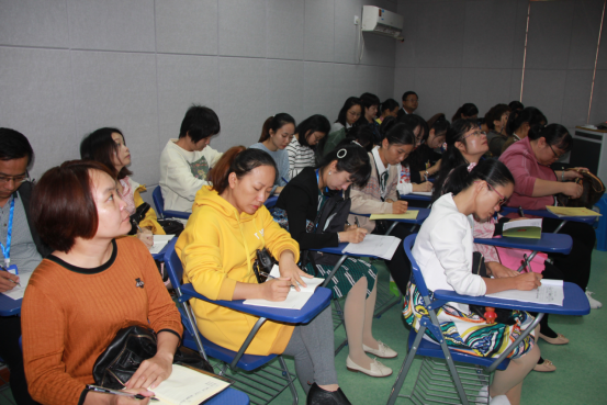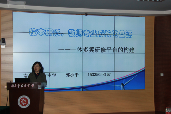 下午,来宾齐聚阶梯教室,认真听取了郭小平校长题为《校本研修教师专业成长的基源--一体多翼研修平台的构建》的精彩讲座。郭校长从建模引航,规范教学的科学思维、专家引领,思想植入的人才战略、典型引路,榜样示范的梯度发展、行政推动,“一盘棋”的顶层设计、研培驱动,提升师能的专业保障、协同联动,多方共建的改革智慧六个方面做了系统全面的介绍,赢得来宾的阵阵掌声。