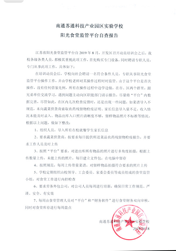 苏通园区实验学校食堂管理情况审计调查问题清单