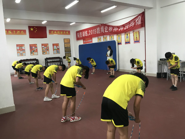 最后,来宾们饶有兴趣地观看了学生大课间跳绳活动,又来到训练馆,观摩了学校跳绳“梦之队”的训练。高难度的动作、变幻的花样、上下翻飞的跳绳,队员们的精彩展示赢得了来宾们一阵阵热烈的掌声。