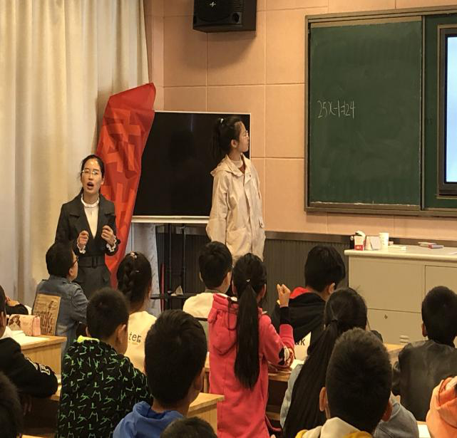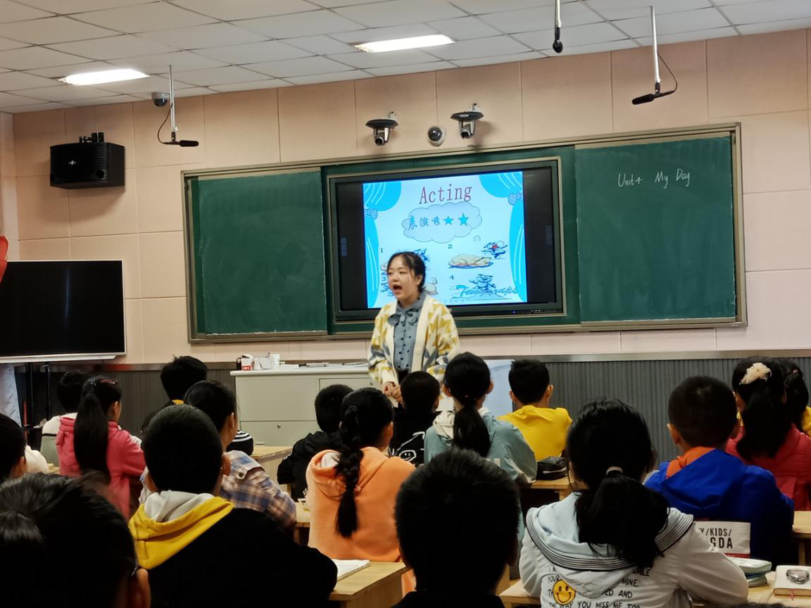 英语老师施皓敏根据教材内容以新颖的方式导入课堂,教态自然亲切,学生轻松、愉快地完成了学习任务。