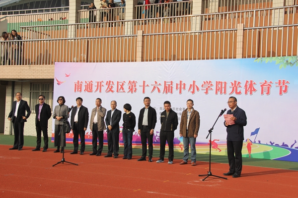 11月2日,2019年南通开发区学校体育节在我校开幕。本次运动会由区社会事业局主办。区社会事业局局长邵平等领导莅临现场,区内各中小学校长参加了开幕式。