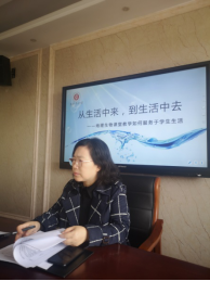 首先,王桂林主任(兼区生物学科教研员)借用陶行知的一句话“社会及教学,生活及教学,教学做合一”,开启“源于生活,服务生活”的话题。她指出,透过学生的生活经验有助于教学。在生物课堂上,教师要善于捕捉生活素材,充实教学内容,使内容生活化、趣味化,提高课堂效率。