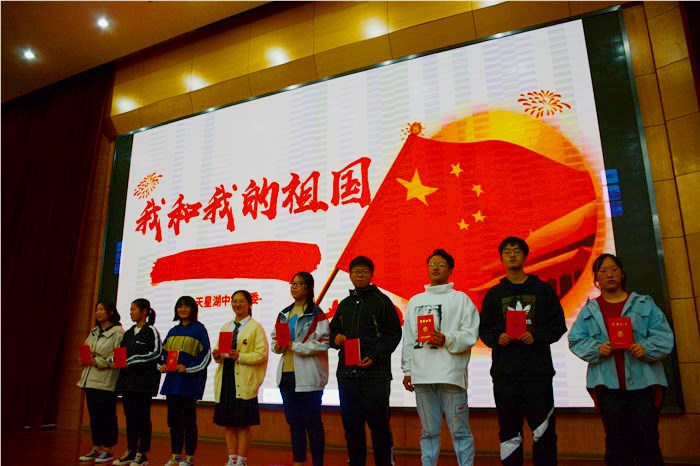 歌声从这里传递,音符从这里飘扬,青春从这里激荡,梦想从这里起航。为庆祝中华人民共和国成立70周年,丰富校园文化生活,努力营造积极向上、健康文明的校园文化氛围,为学生提供展示自己才华的舞台,南通市天星湖中学“我和我的祖国校园歌手大赛”于2019年10月26日晚,在姿兰楼底楼报告厅举行。本次比赛以班级为单位,高一、高二年级共有23组选手参加比赛,比赛设高一年级一、二、三等奖和高二年级一、二、三等奖。